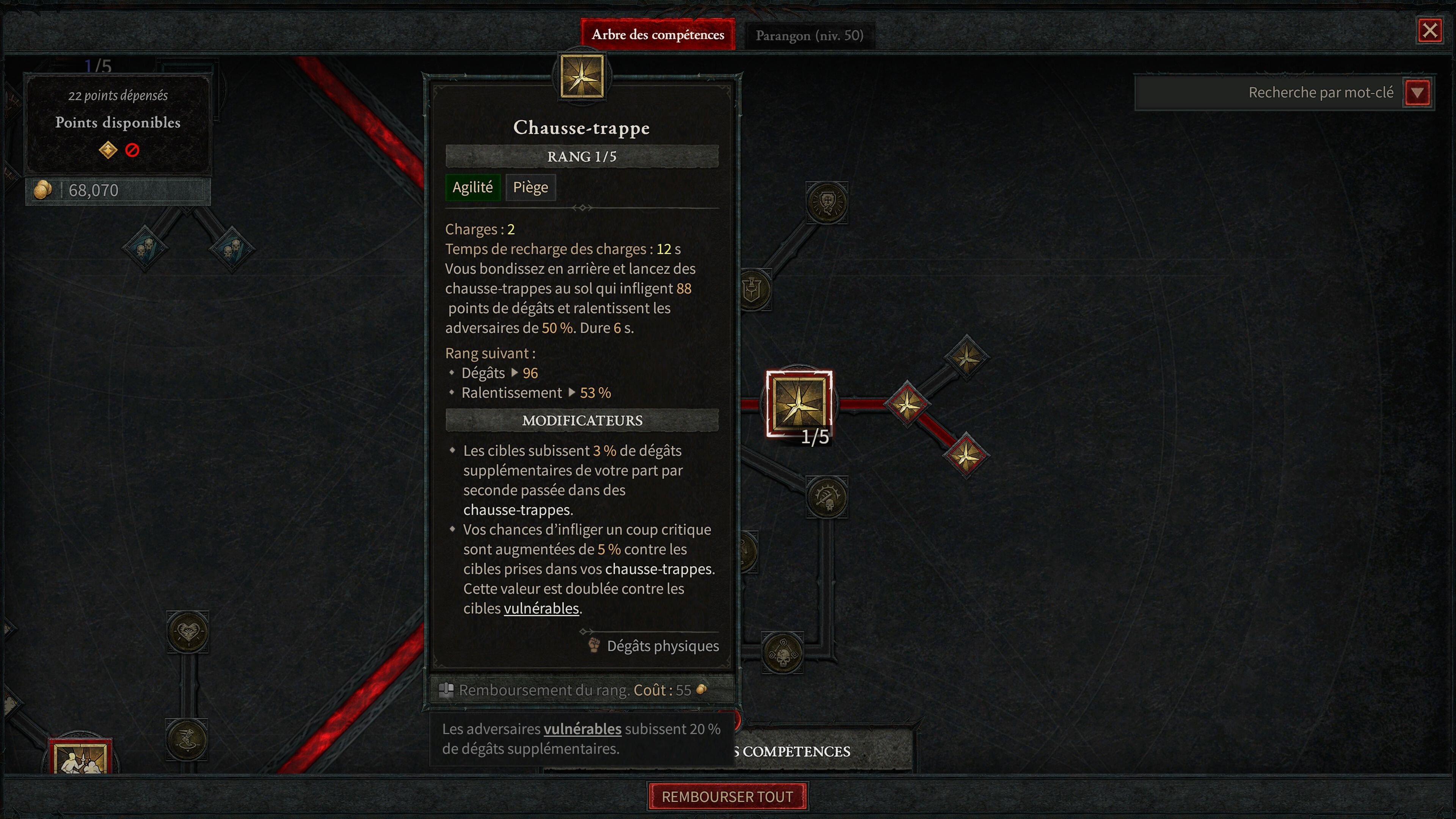 Build Voleur Pièges Lames sournoises Diablo 4 pour un leveling rapide des niveaux 50 à 75