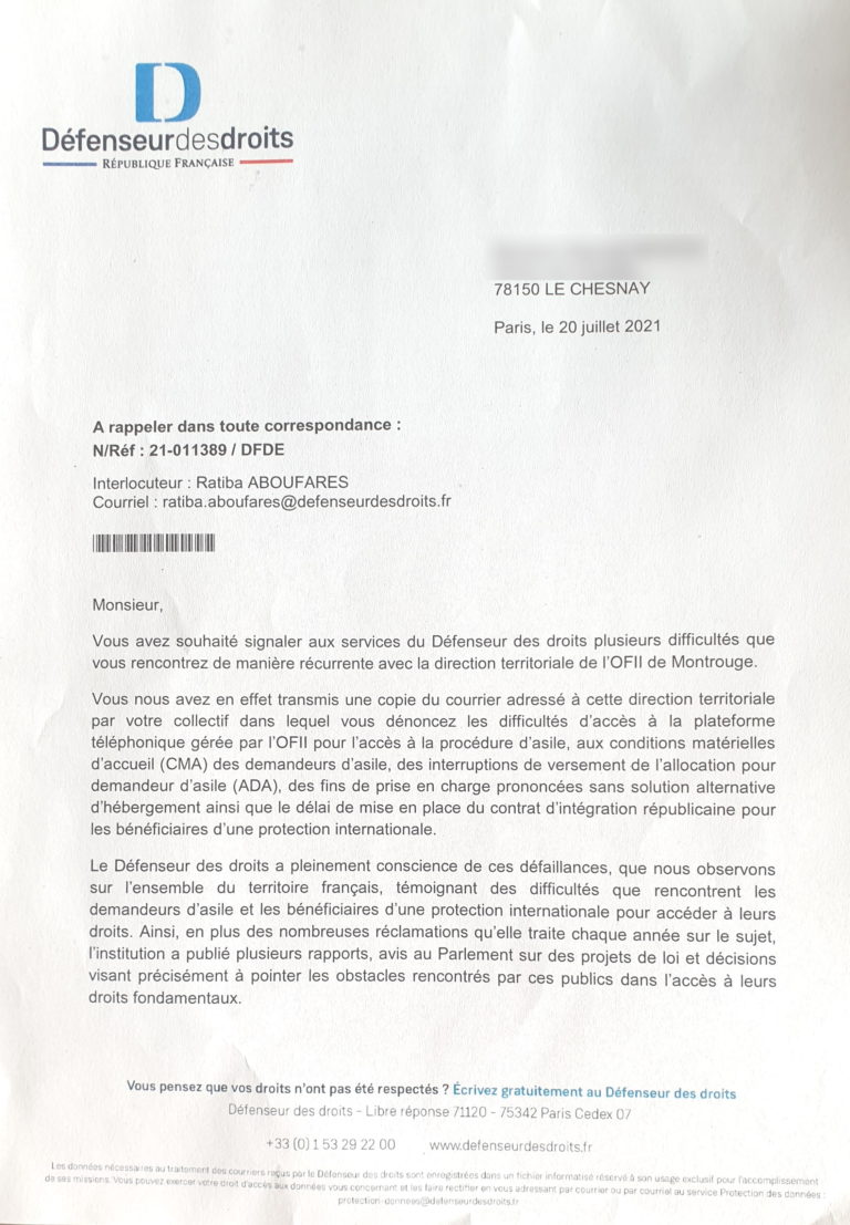 Problèmes récurrents à l’OFII réponse du Défenseur des droits Réseau Amy
