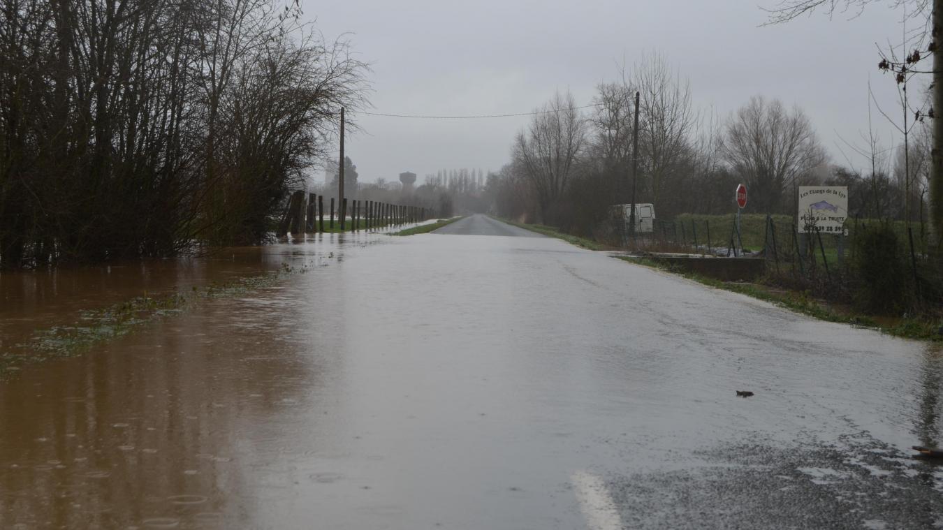 La rue de Camberny à Roquetoire. A lors qu'Aire-sur-la-Lys et les environs étaient épargnés jusqu'ici par les inondations qui touchent l'Audomarois, la situation devient inquiétante ce.
