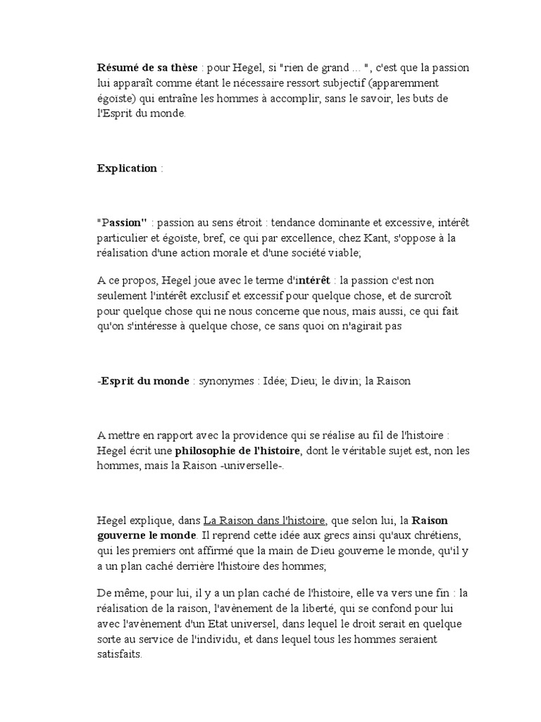S'il y a un ensemble homogène présupposé lorsqu'on parle de l'Histoire, l'approche de Hegel est une approche de « philosophie de l'Histoire » on y retrouve le terme de « sens » de l'Histoire au double sens, il y aurait alors une direction mais aussi un but, une raison d'être à cette histoire…. Avec.