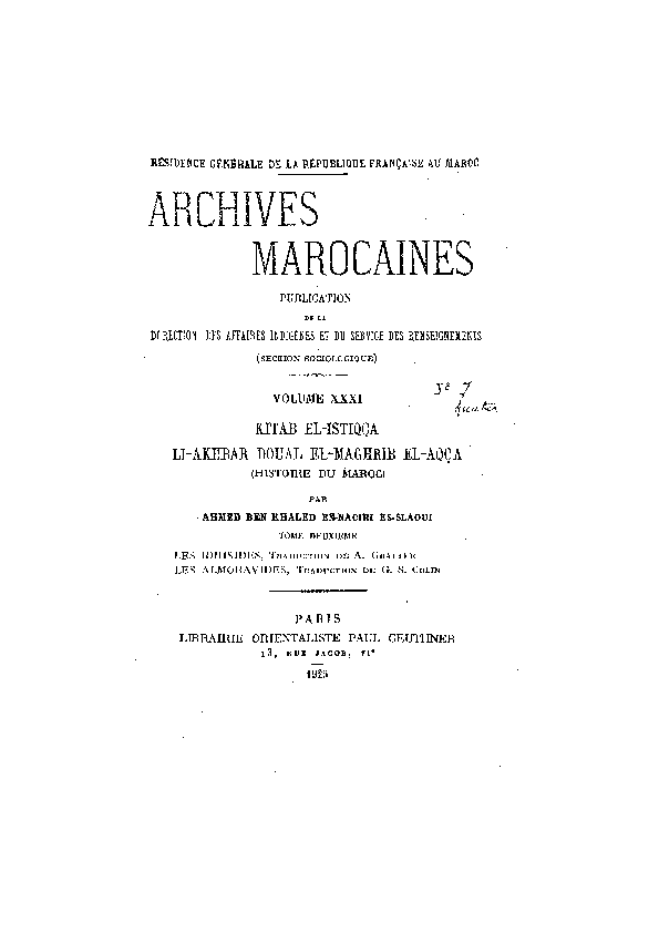 (PDF) ARCHIVES MAROCAINES PUBLICATION KITAB ELISTIOQA LIAKHBAR DOUAL ELMAGHRIB ELAOCA