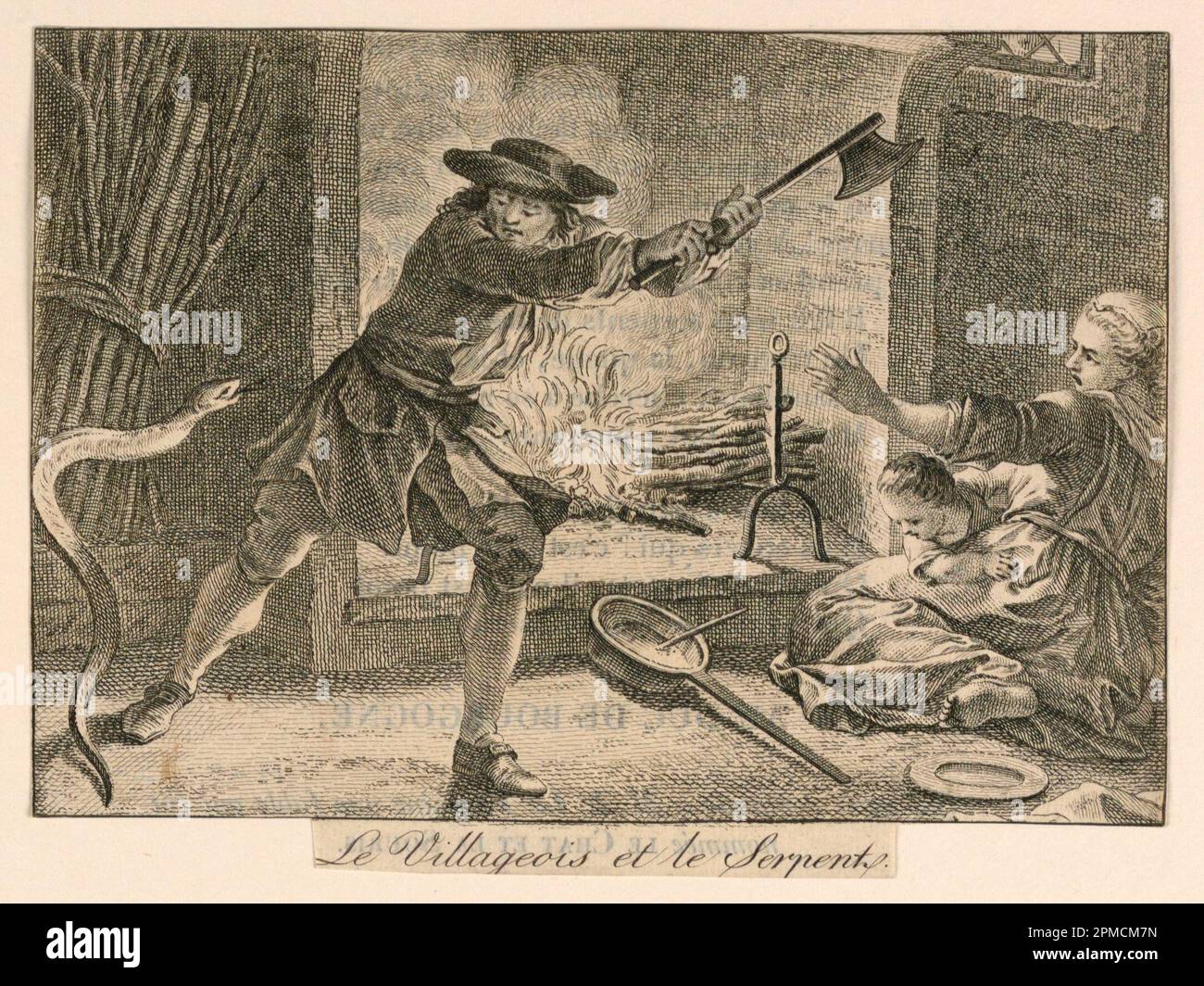 Engraving, "Le Villageois et le Serpente" from La Fontaine's Fables; France; black ink on white