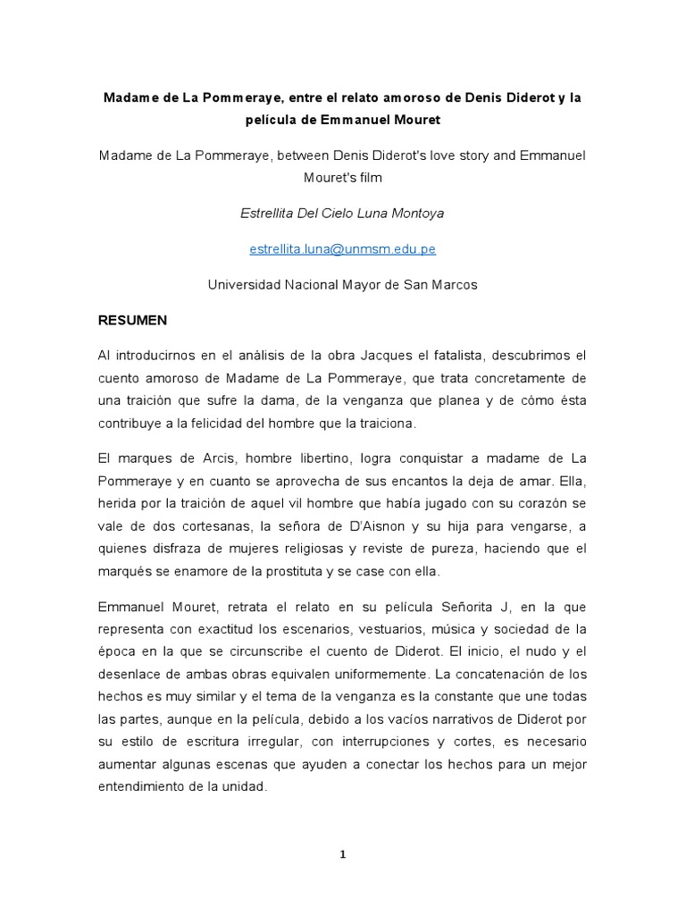 Madame de La Pommeraye, Entre El Relato y La Película PDF Amor Cuentos