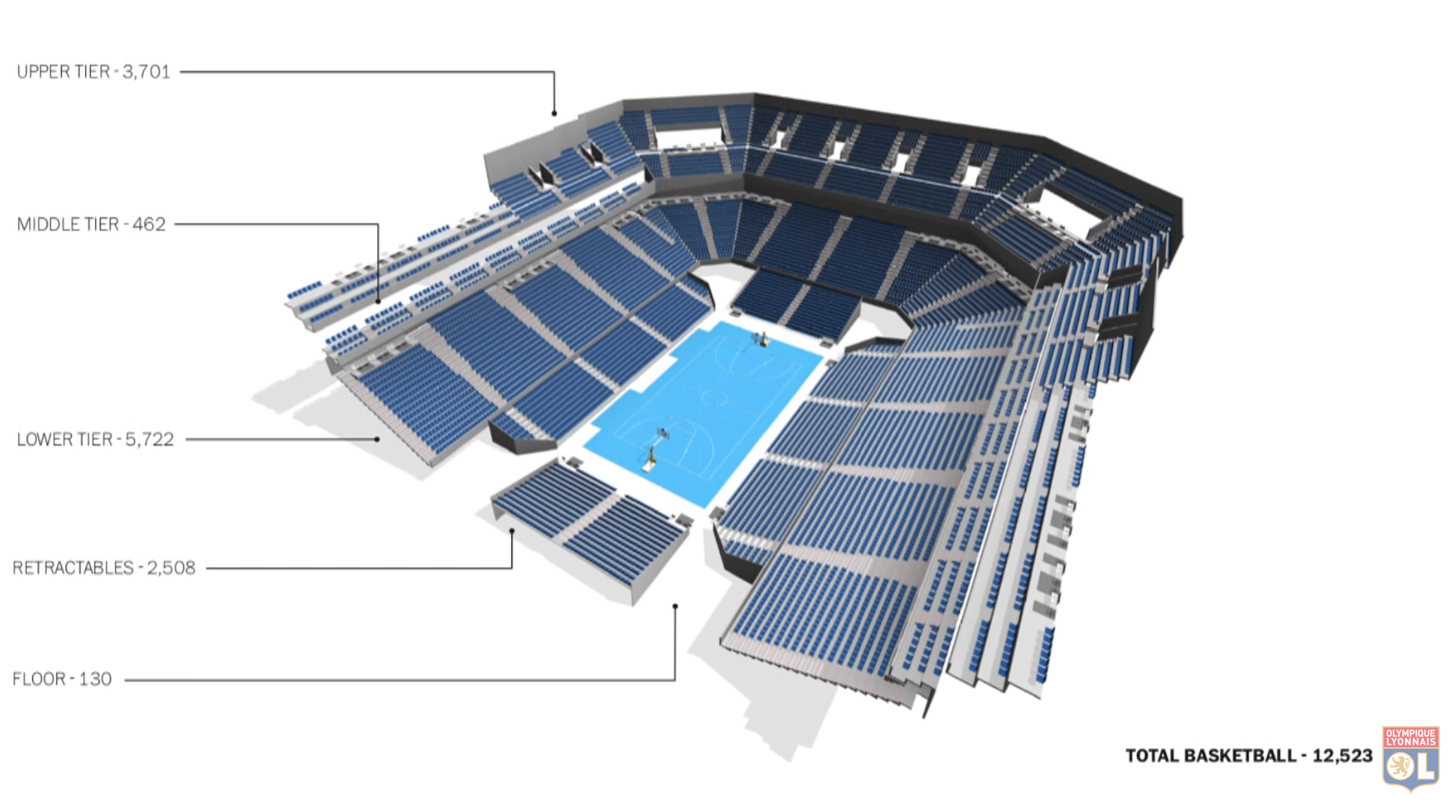 Historia Proyecto de construcción. El 7 de diciembre del 2018, el club de baloncesto ASVEL Lyon-Villeurbanne anunció un proyecto de estadio multifunción que albergaría, en particular, partidos del LDLC ASVEL de la Euroliga. [1] En febrero del 2019, Jean-Michel Aulas, propietario y presidente del Olympique de Lyon, anunció planes para construir una sala polivalente junto al estadio.
