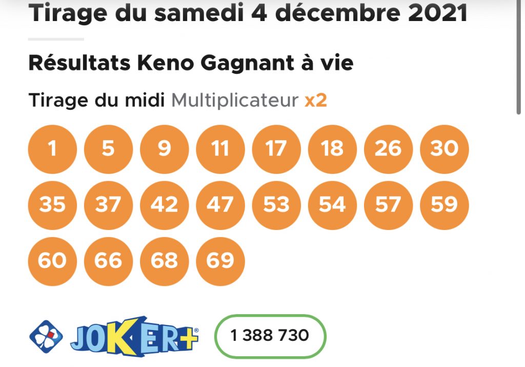 Résultat KENO 4 décembre 2021 tirage FDJ Midi et Soir [Tirage Complet]
