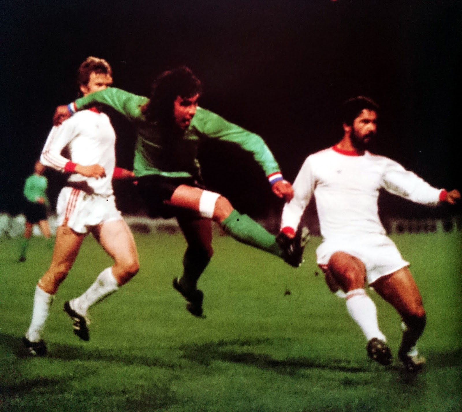 Bayern Munich 1 St Etienne 0 in May 1976 at Hampden Park. Domenic Rochteau with two Bayern